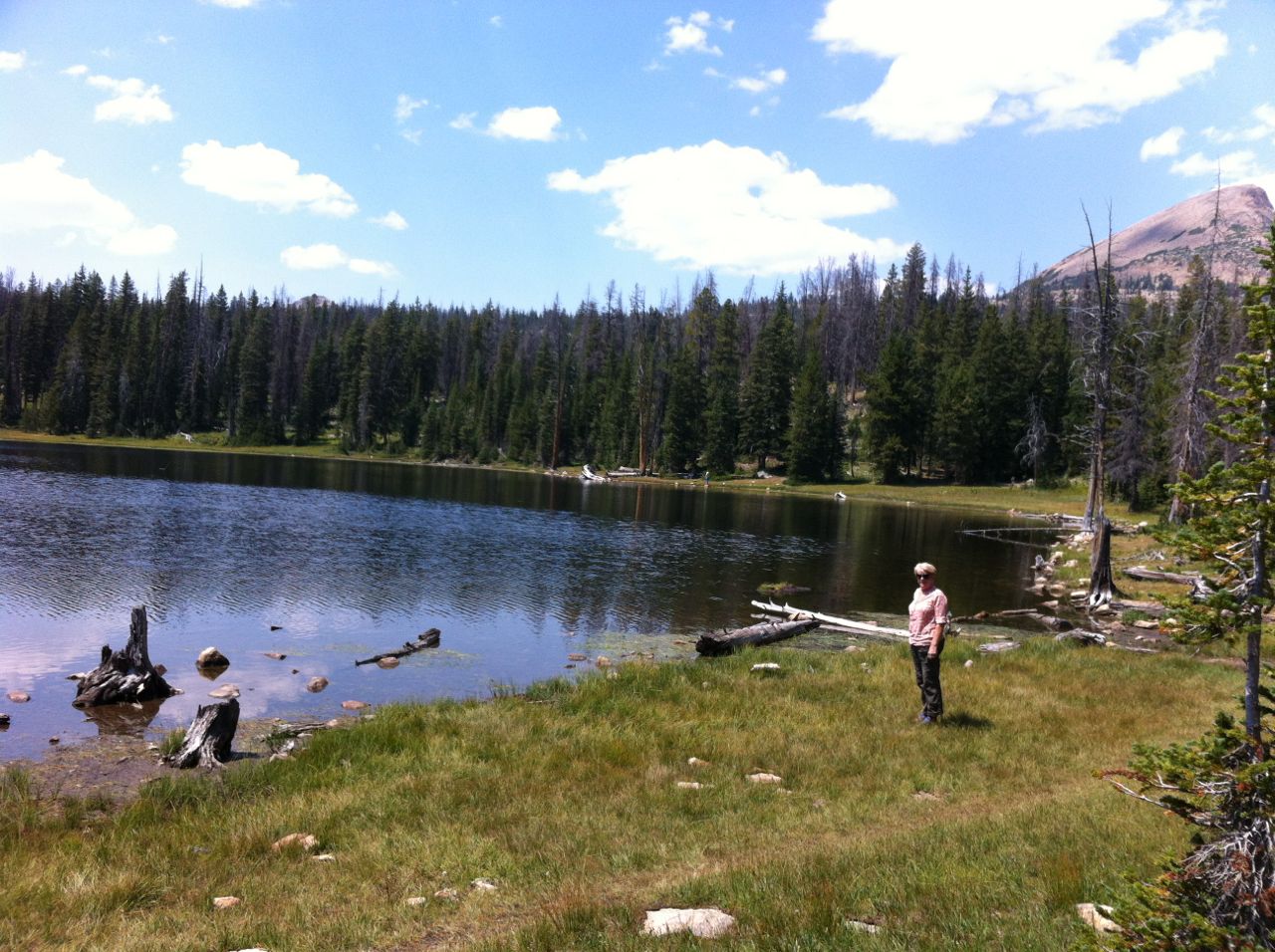 Linda and I are staying in Park City, Utah for a week, while I attend a workshop. The workshop sessions are morning and evening, leaving afternoons free. So today Mom and I drove up into the High Uintah mountains (about 40 miles east of Park City), and hiked a very pleasant 10-mile roundtrip trail, which heads west from the road near Trial Lake. We saw a total of seven gorgeous lakes in the process. Here are some photos.