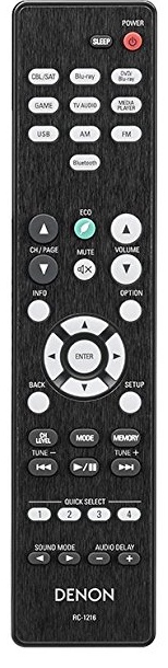 f. Return to previous menu (lower left). - Denon receiver remote (not needed in normal usage):