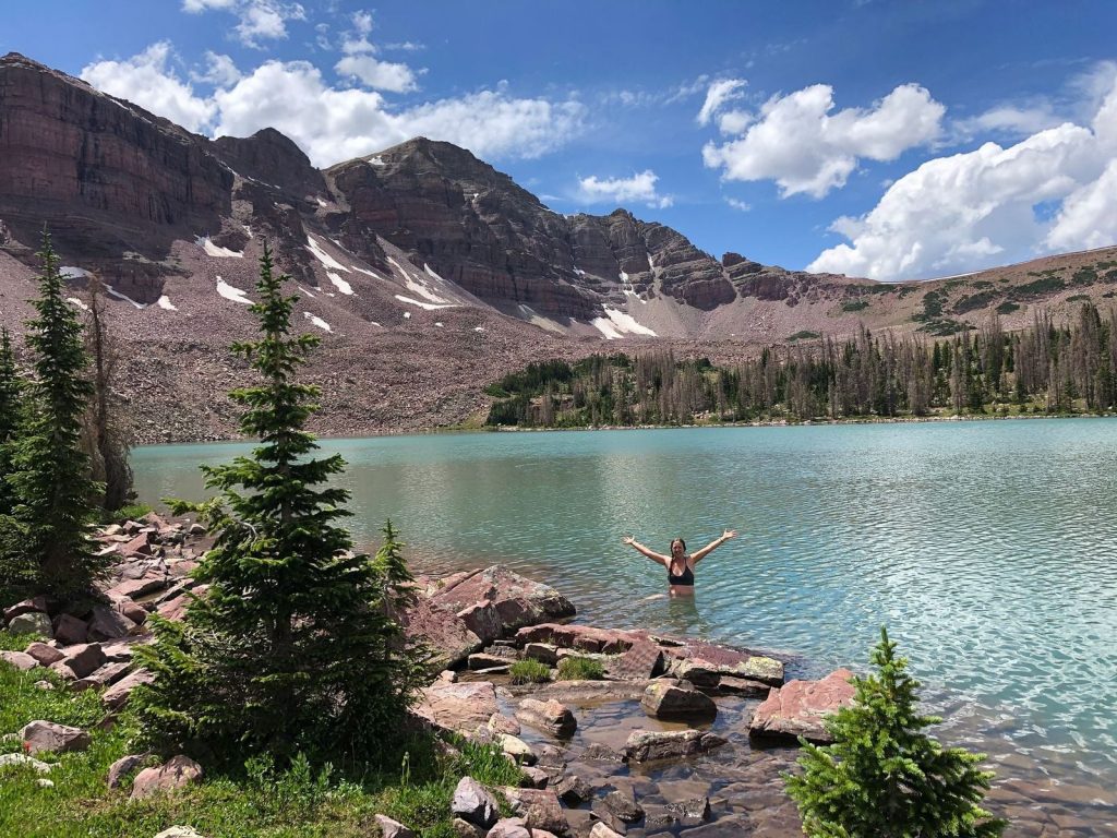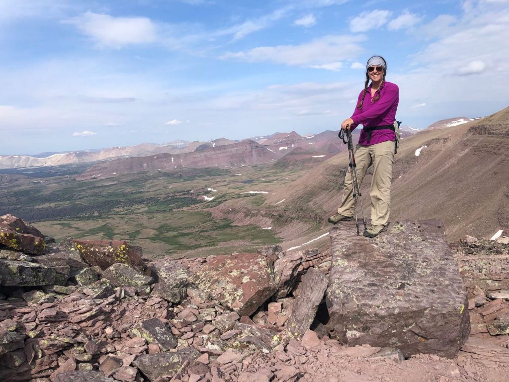 Chrissy just finished an epic adventure, completing the 98-mile Unita Highline trail. According to Chrissy, she “saw moose, elk, deer, a mountain goat, pack goats, sheep, marmots, picas, an osprey, a grouse and more.” Along the way, she “learned to read weather, faint signs of human travel (the most we could make of the trail for a lot of the way), judge distances to passes and peaks, and how to listen to my body to keep it up for the task.” She “summited King’s Peak, the highest point in Utah, soaked up scenery that brought me to tears, witnessed the milky way and shooting stars on a moonless ink black sky, and best of all created beautiful bonds with some beautiful humans.”