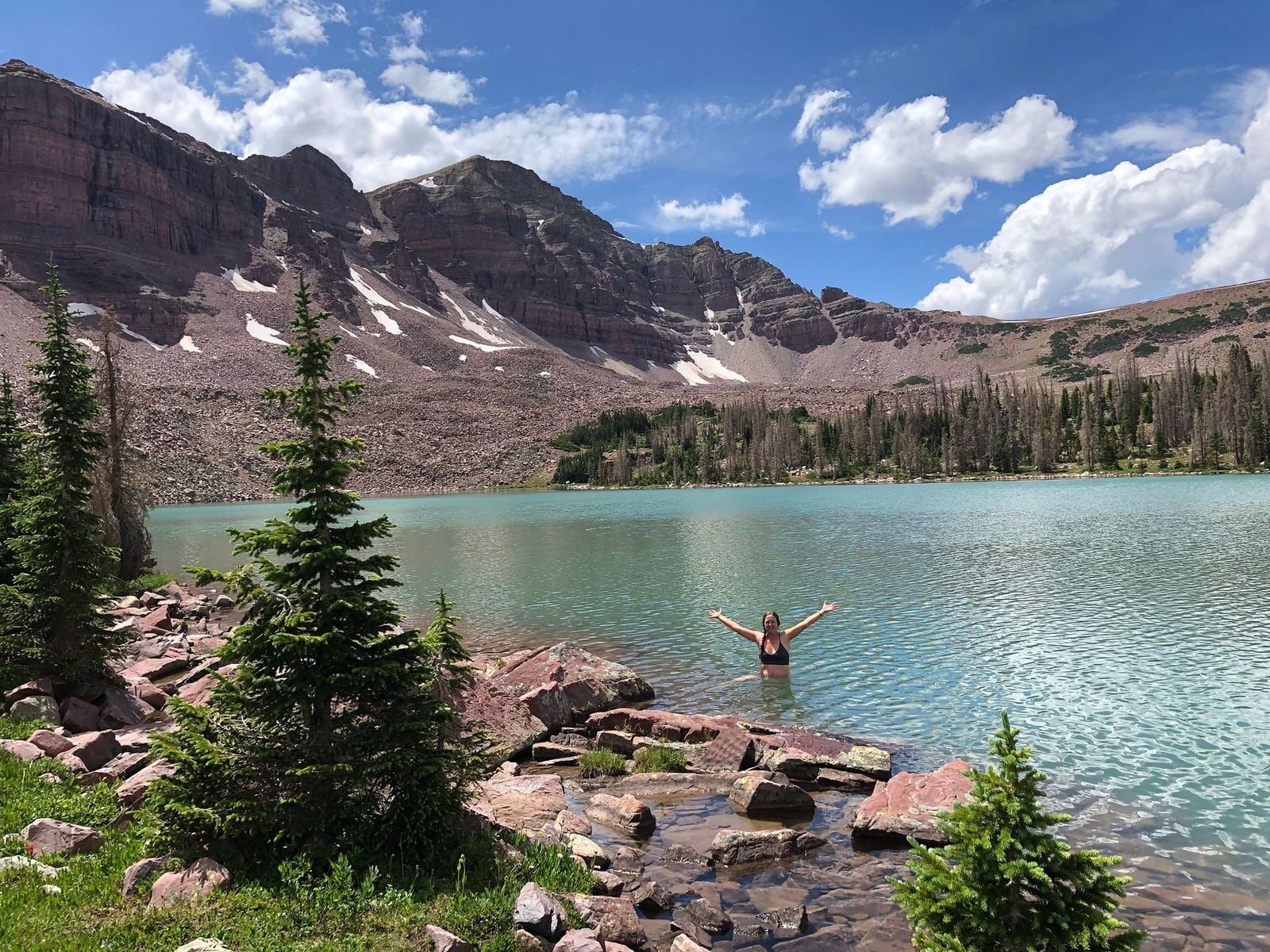 Chrissy just finished an epic adventure, completing the 98-mile Unita Highline trail. According to Chrissy, she “saw moose, elk, deer, a mountain goat, pack goats, sheep, marmots, picas, an osprey, a grouse and more.” Along the way, she “learned to read weather, faint signs of human travel (the most we could make of the trail for a lot of the way), judge distances to passes and peaks, and how to listen to my body to keep it up for the task.” She “summited King’s Peak, the highest point in Utah, soaked up scenery that brought me to tears, witnessed the milky way and shooting stars on a moonless ink black sky, and best of all created beautiful bonds with some beautiful humans.”
