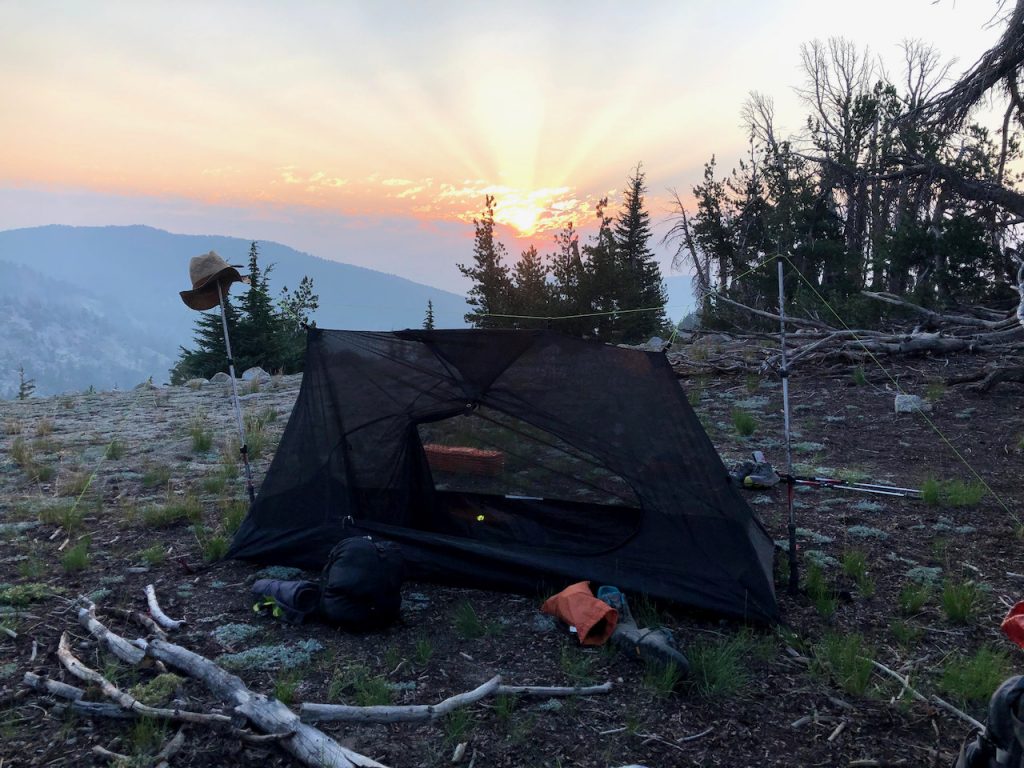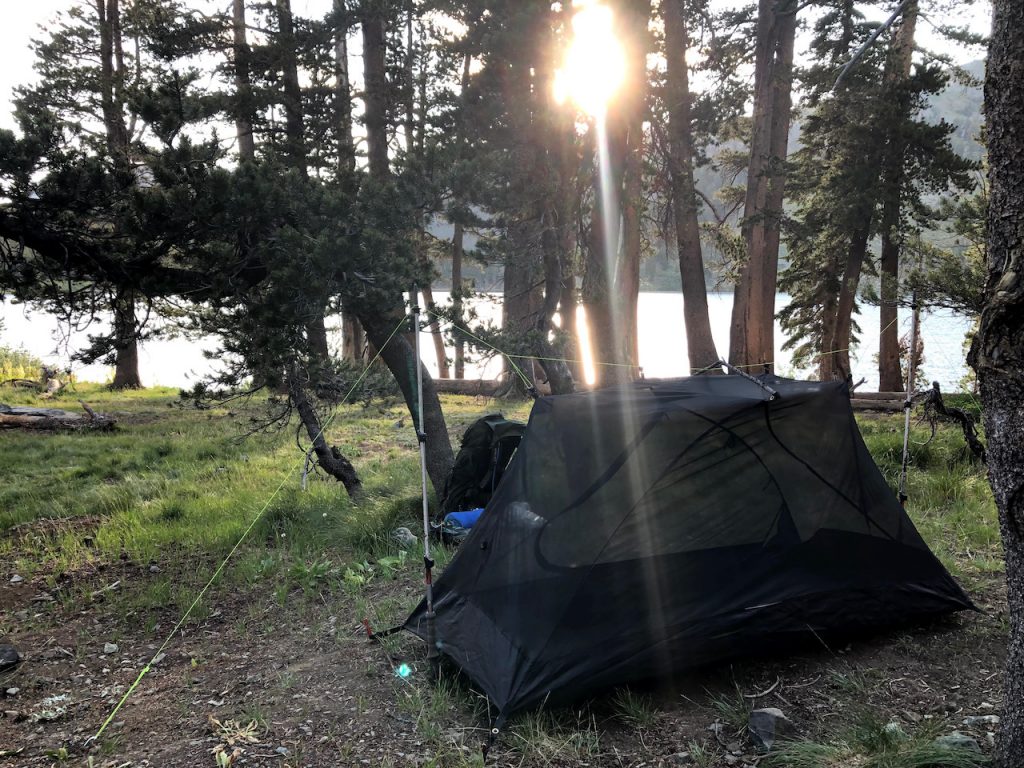 Chrissy’s tent at Gilmore Lake (notice the poles are Chrissy’s hiking poles)