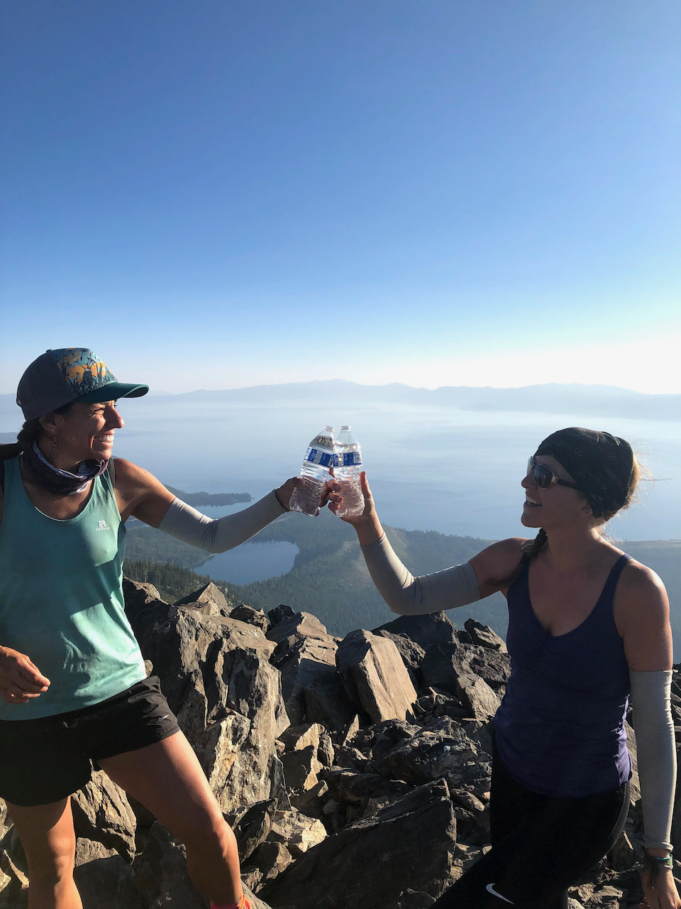 Kristen and Chrissy at the summit of Mt Tallac