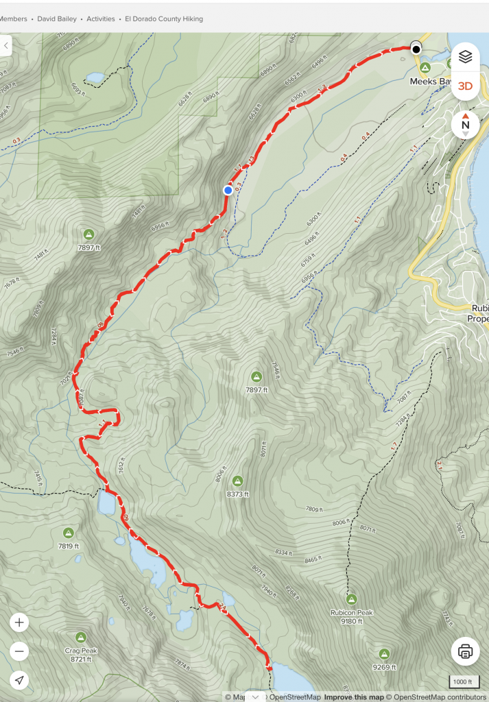 Here is a map of a hike from the Meeks trailhead to Genevieve Lake, then to Crag Lake, then to Stony Ridge Lake: