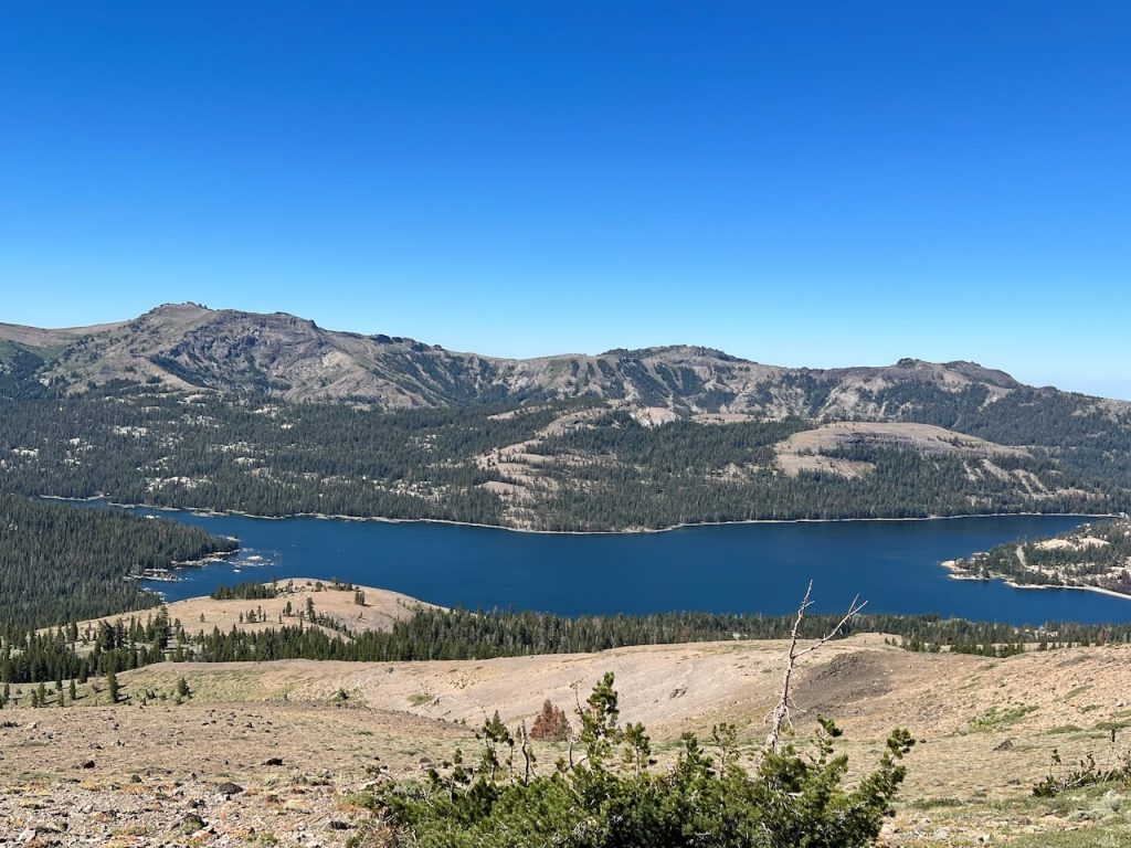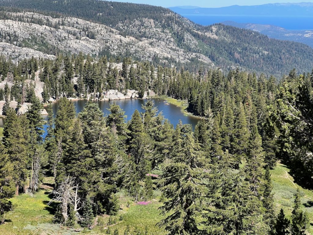 Here is Showers Lake from the ridge (note Lake Tahoe in the background):