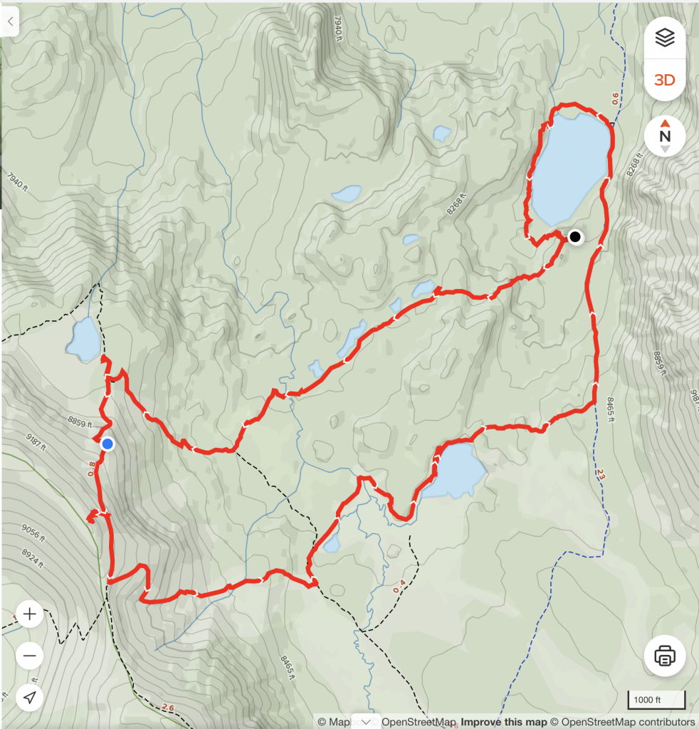 Here is a map of a hike from Woods Lake to Round Top Lake, then to Winnemucca Lake, before returning: