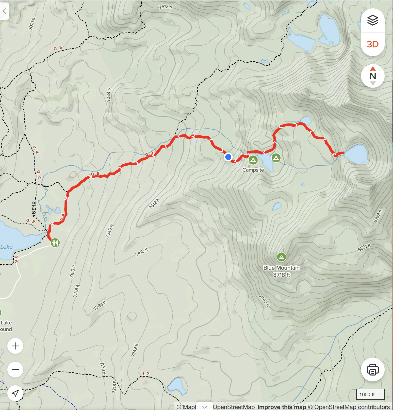 Here is a map of a hike from Wright’s Lake to Grouse Lake and Smith Lake, before returning: